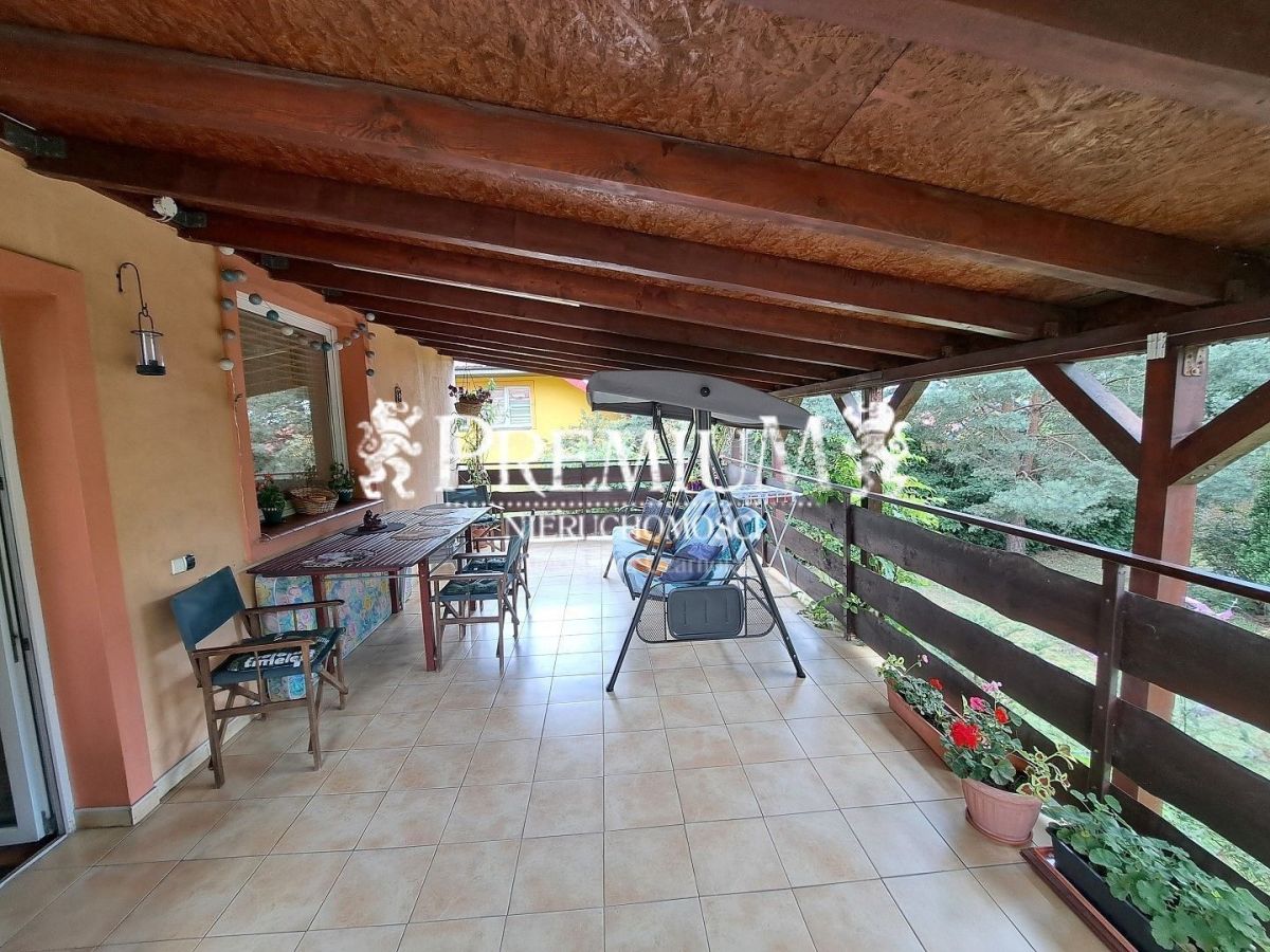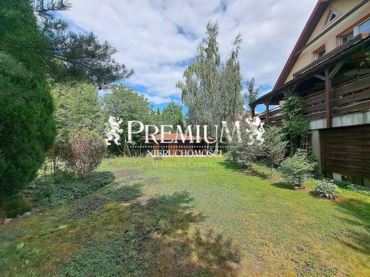 Dom otoczony jest zielenią, duży ogród z licznymi nasadzeniami, kwitnący od wiosny do jesieni jest oazą spokoju. Ogrodzenie z bramą przesuwną, wybrukowany podjazd.