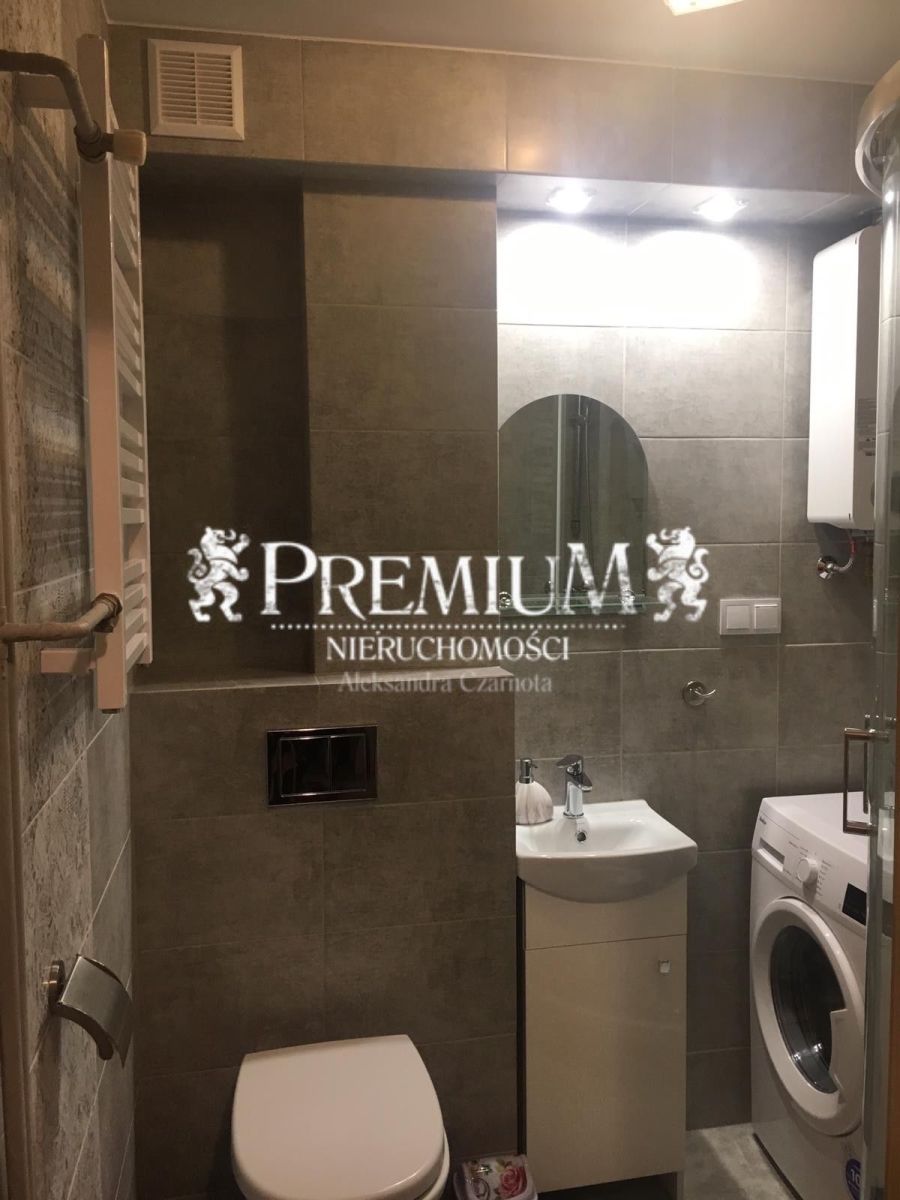 Łazienka o pow. ok 3 m2, na podłodze i ścianach nowe kafle, toaleta, kabina prysznicowa , pralka, junkres podgrzewający wodę.