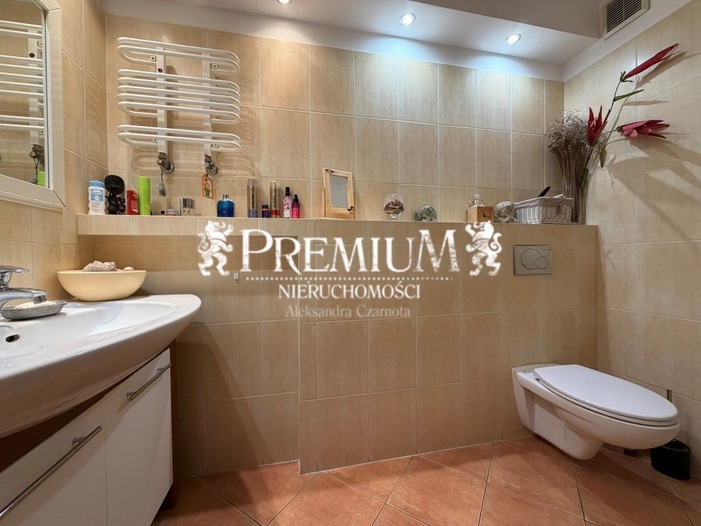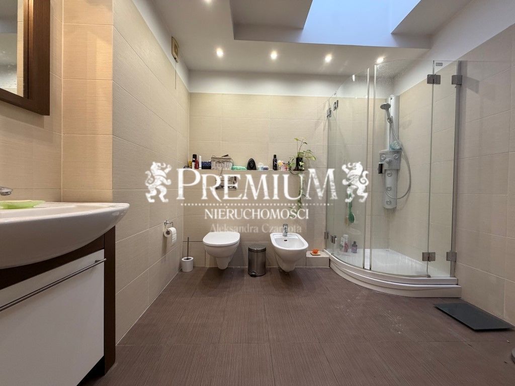 - łazienka o pow. ok. 9 m2 wraz z kabiną prysznicową , toaletą, bidetem oraz umywalką.Pralka.