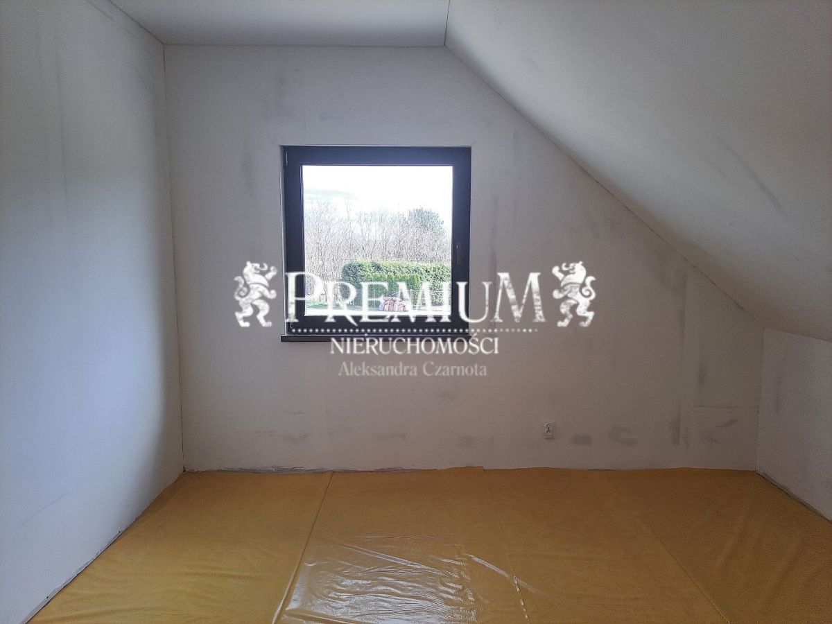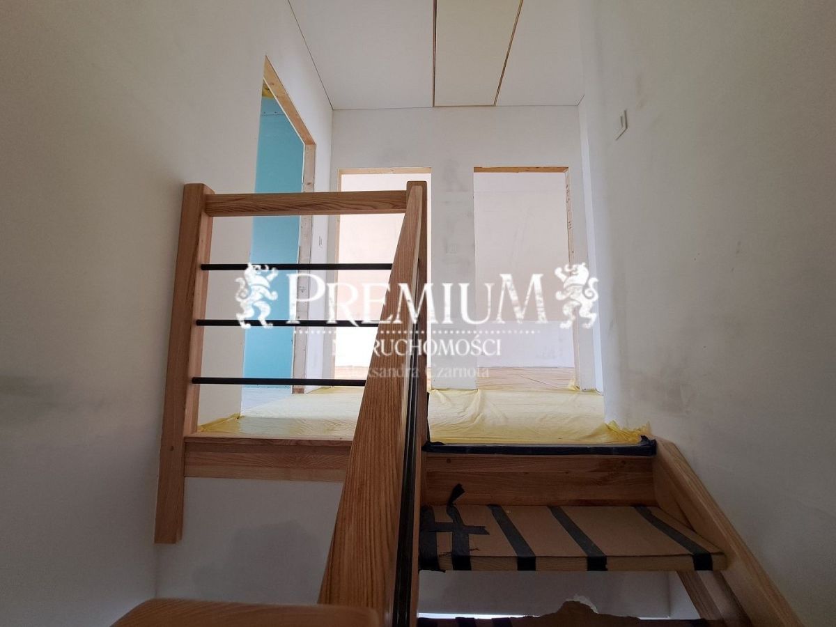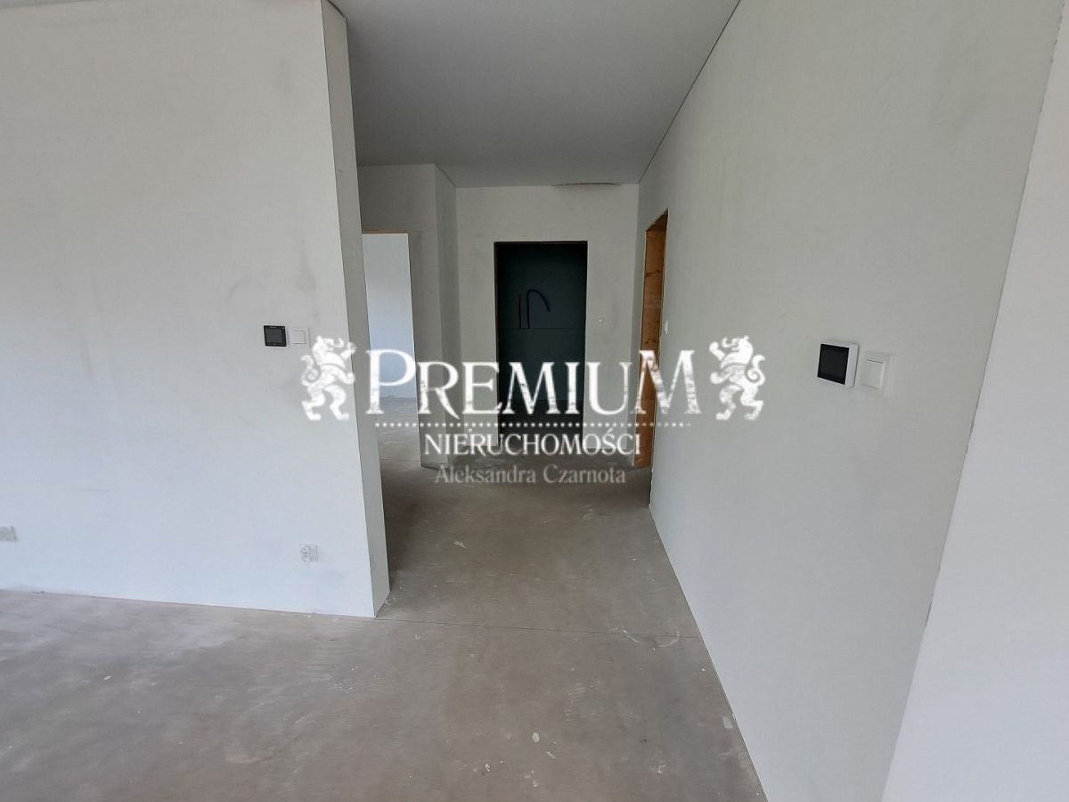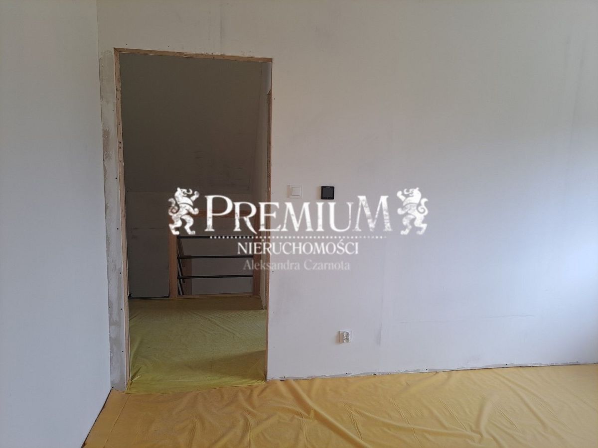 W całym budynku zastosowano nowoczesne ogrzewanie elektryczne za pomocą mat emitujących podczerwień, ogrzewacz wody, rekuperator ze sterowaniem wraz z filtrami FP2, z jonizacją powietrza, eleganckie sufity napinane. Ściany (w gładziach) pomalowane białą farbą z gruntem, przygotowane do malowania na dowolny kolor, wylane posadzki. W cenie również jasne drewniane schody wewnętrzne. Salon znakomicie doświetlony z pięknymi dużymi przeszkleniami z rozsuwanymi oknami tarasowymi.